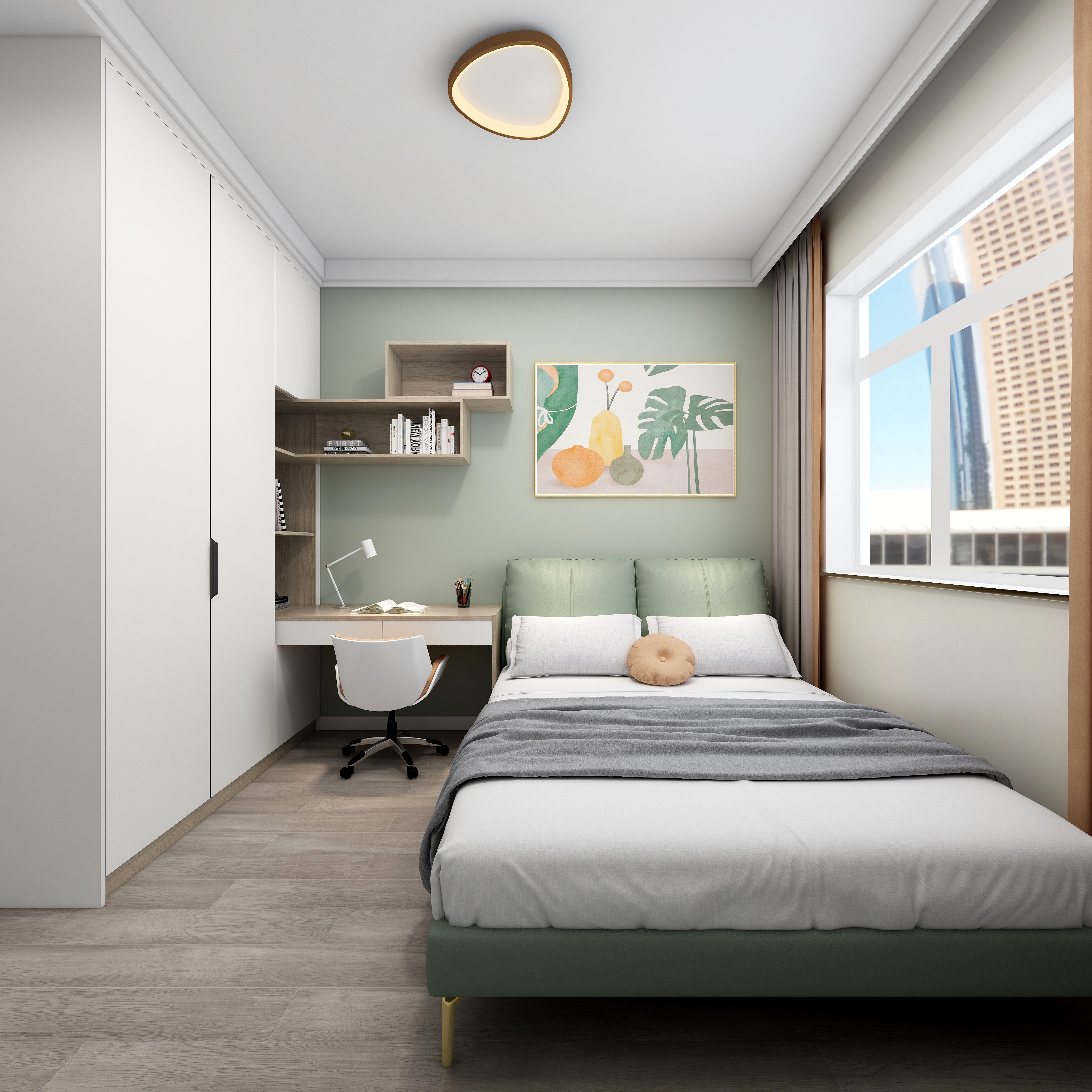 卧室是比较私密的空间,在这里挤个书桌的话,能实现较为安静舒适的加班工作氛围。