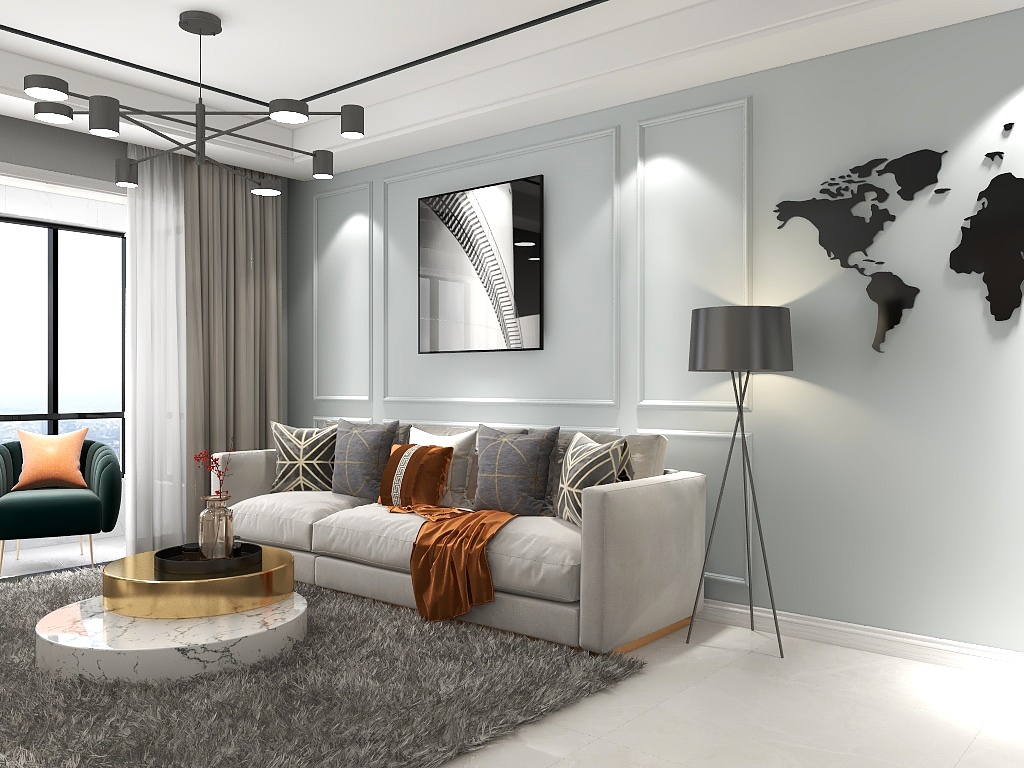 墙面是白色,沙发的颜色就百搭了,一般灰色就不错。想要北欧,就选流行的马卡龙。想要简约,基本任何柔色调都可以。