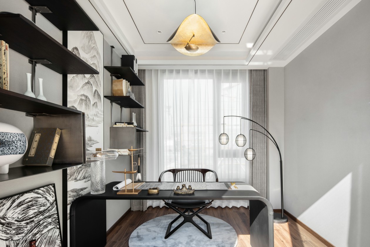 太原新房装修公司,新中式书房应该怎样装修?中式书房经过时间的沉淀,将传统的中式元素与现代风格进行了结合形成了新中式风格。新中式风格的书房无论是从陈设到布局,还是色调到装饰都表现出一种儒雅大气的特征出来,受到很多人的喜好。