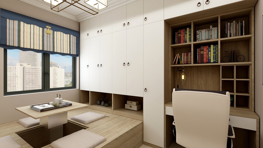 国内的榻榻米,基本都是在窗边沿着开间方向铺设地柜,在其上面布置床品。开间尺度足够的话,在地柜靠两侧墙体位置可以打柜子,既能满足睡眠功能,还可以制造更充足丰富的收纳空间。高低床就是高低落差的床,也就是所谓的上下床,上面的床位满足睡眠功能,下方也可以满足睡眠功能,或者做书桌,做收纳等等,儿童房所用的高低床,其外观造型,所包含的功能,以及在安全的保护上也做很好。