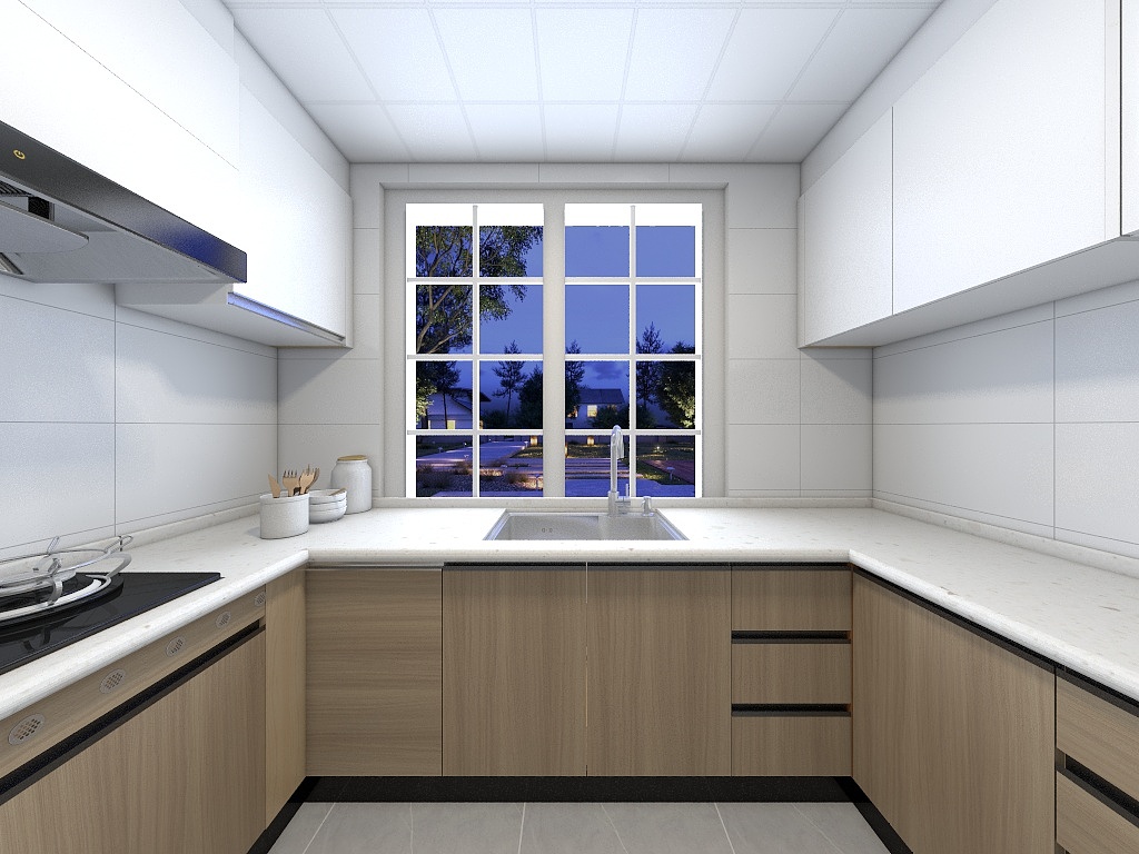 U型厨房布局使用三面相邻的墙壁来容纳所有的厨房用具和橱柜,在空间的中间没有任何流线障碍。由于这些布局可以用在有专门的厨房房间的房子里,也可以用在开放式的布局中。利用他们所拥有的空间,将三个主要电器放在每一面墙上,形成一个自由的三角形运动流线。