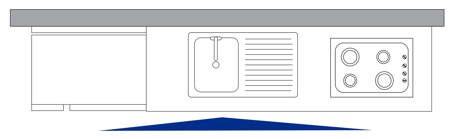 注意:避免一条边过长,否则会压缩操作区面积,降低做饭效率。另外,拐角处空间利用也很重要。